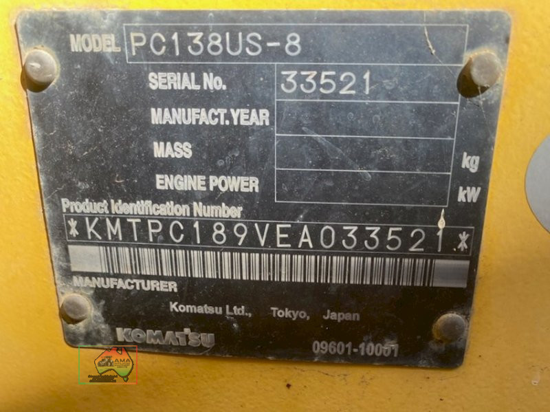 2016 Komatsu Pc-138/8 Excavator ~ 97 Hp, 3.3 Ltr, 4cyl Diesel Engine ~ Full hydrostatic transmission ~ 7,174 Hrs ~ 14.5ton freight weight ~ Full service/maintenance history ~ Comes with; GP bucket, Std mud bucket & Trench bucket ~ A very well maintained & tidy machine.