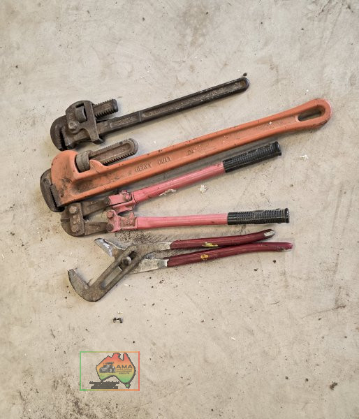 2x Stilsons, Bolt Cutter & Multigrip
