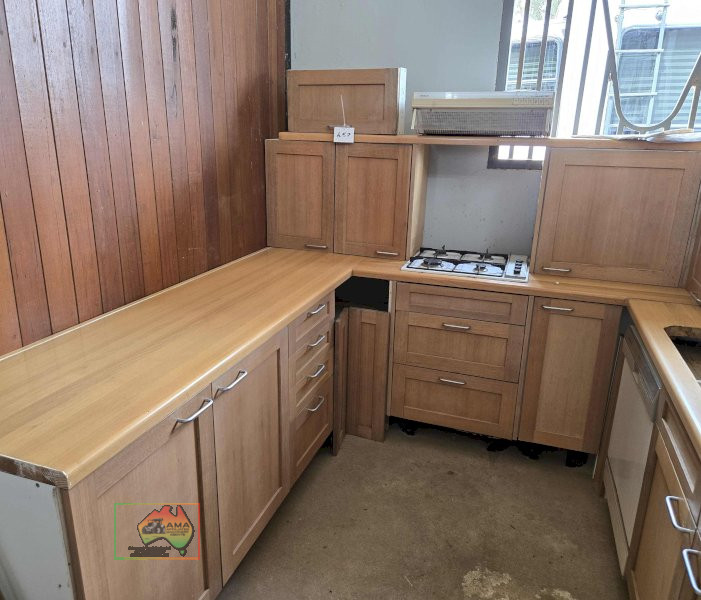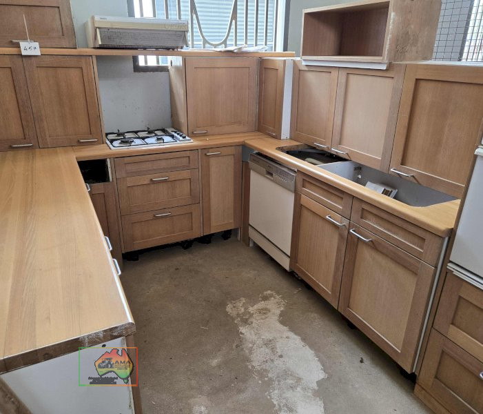 Complete Timber Kitchen (Excl. Sink) ~ Wall Grill ~ Wall Oven ~ Gas hotplates ~ Rangehood ~ Dishwasher ~ Pantry & Overhead Cupboards ~ 2.4m wide x 3.53m (2.35m on open bench side) ~ Absolute BARGAIN....