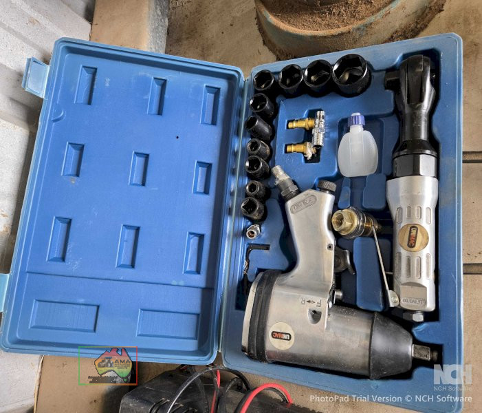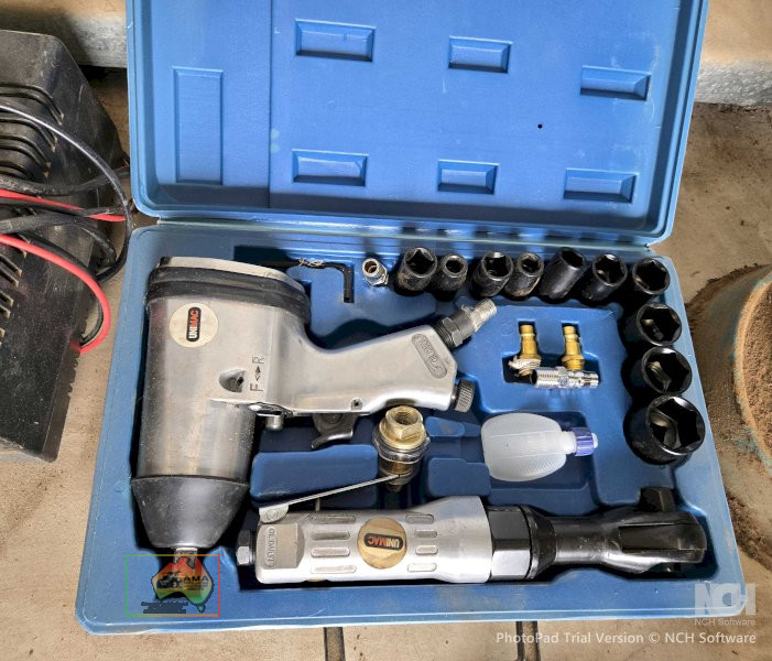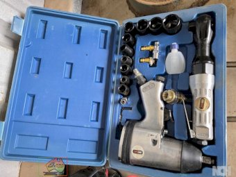 Unimac Air Ratchet Set ~ Impact driver & ratchet handle ~ Metric impact sockets ~ Near new, hardly used.